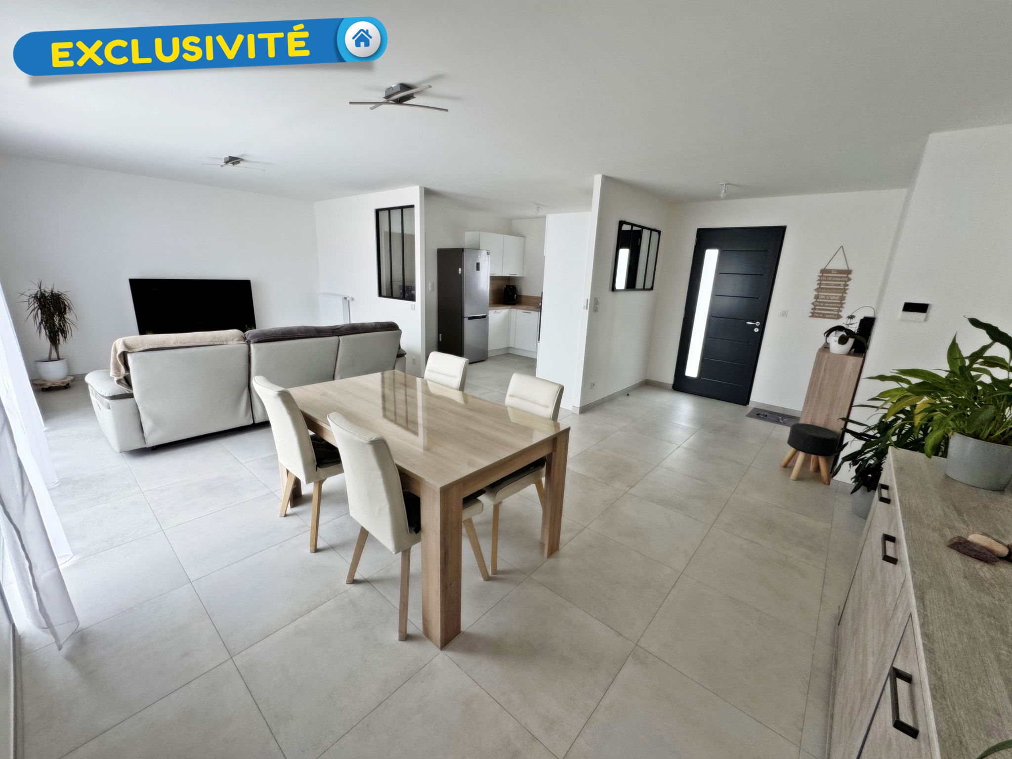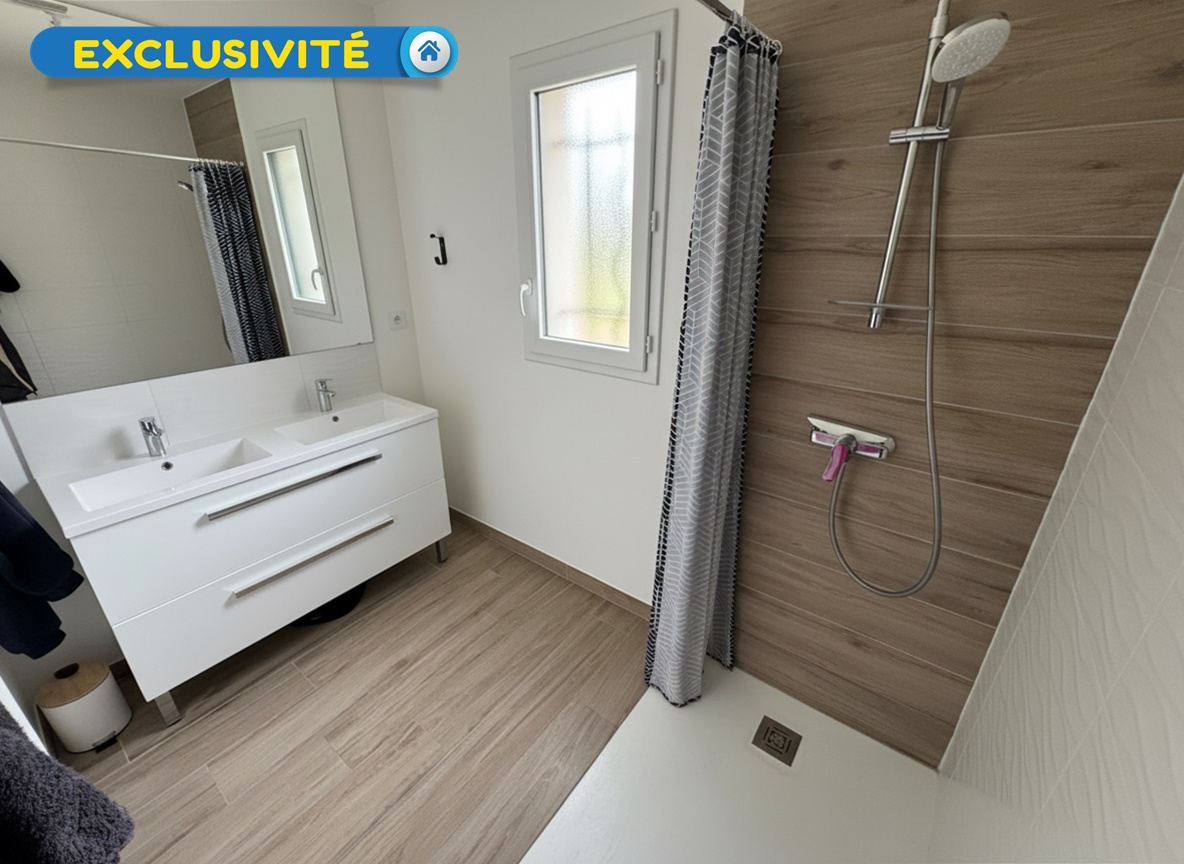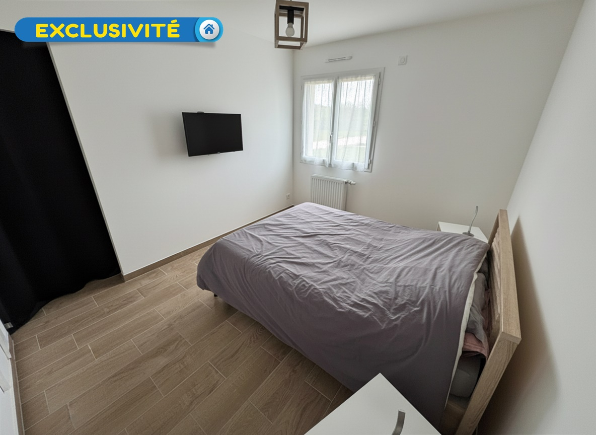 Exclusivité ! Votre agence Espace Immobilier vous présente une maison au calme conçue en 2024 totalement de plain-pied comprenant une entrée, un spacieux séjour salon très lumineux avec une cuisine aménagée et équipée donnant sur une terrasse exposée plein sud, un cellier, un couloir qui dessert deux chambres avec placards, un WC séparé et une salle d'eau avec une douche à l'italienne. Les combles sont aménageables. La maison comprend un garage d'environ 25 m² avec un grenier. Jardin arboré d'environ 850 m². Les atouts d'un bien récent : chauffage pompe à chaleur, garanties décénnales et dommage ouvrage jusqu'en 2034.